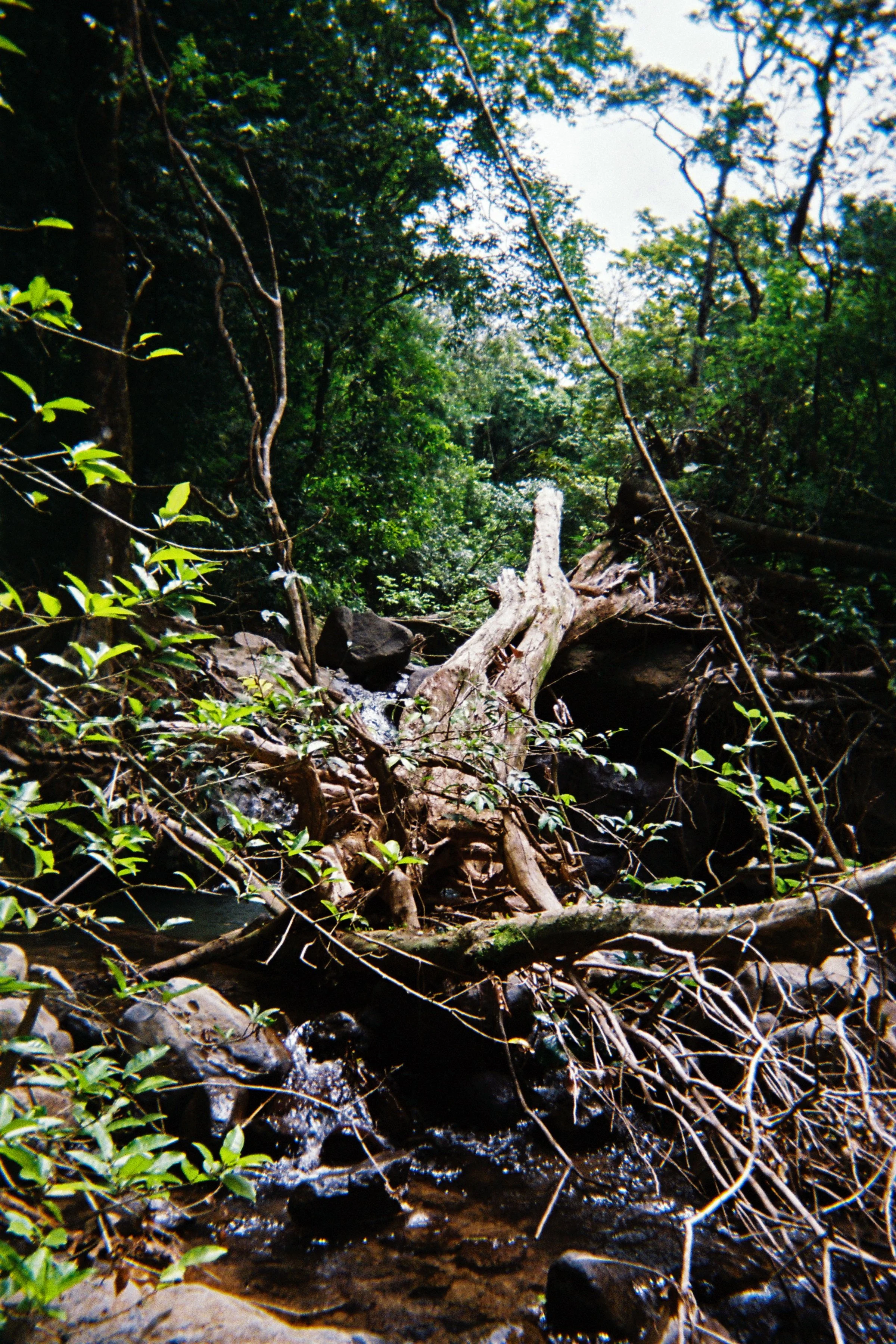Fire burning the forest, set by someone who exploited the land. Slash-and-burn is a technique used to clear and fertilize land with ash. However, over time, it became a form of land exploitation. In resistance, In some forest in Costa Rica that they use this technique the earth began to regenerate itself, searching for its roots to survive the abuse. Many soils have been rescued from severe exploitation after a shock, they slowly begin to green again.